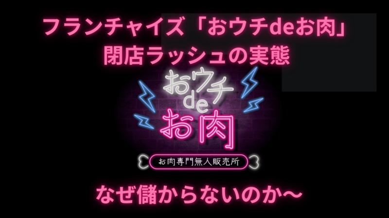 こんにちは!一時期、急成長を遂げた無人精肉販売店「おウチdeお肉」が、最近になって閉店ラッシュを迎えていることをご存じでしょうか?コロナ禍で爆発的に広がったこのビジネスモデルに何が起きているのか、儲からない理由や炎上騒動を含めて詳しくレポートします。